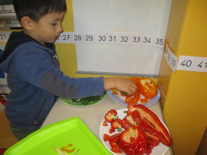 Ils ont d’abord expérimenté les fruits d’automne puis ce fut au tour des légumes. Ils ont pu les voir, les palper, les sentir, les goûter. Tous les sens en éveil !