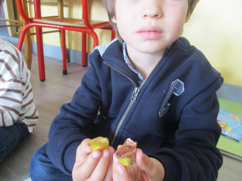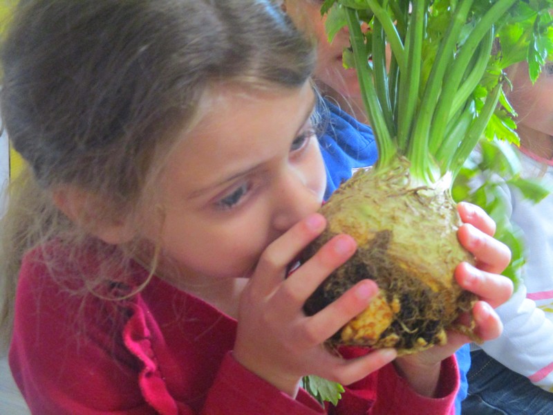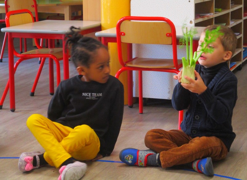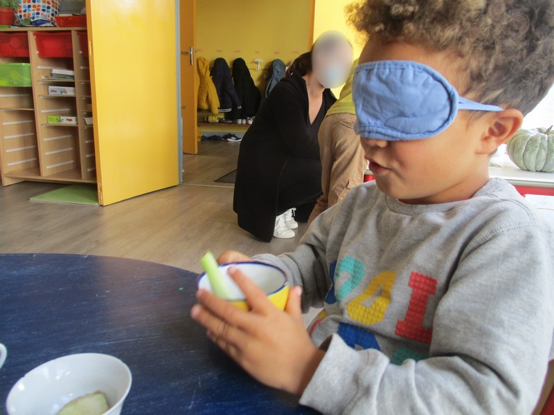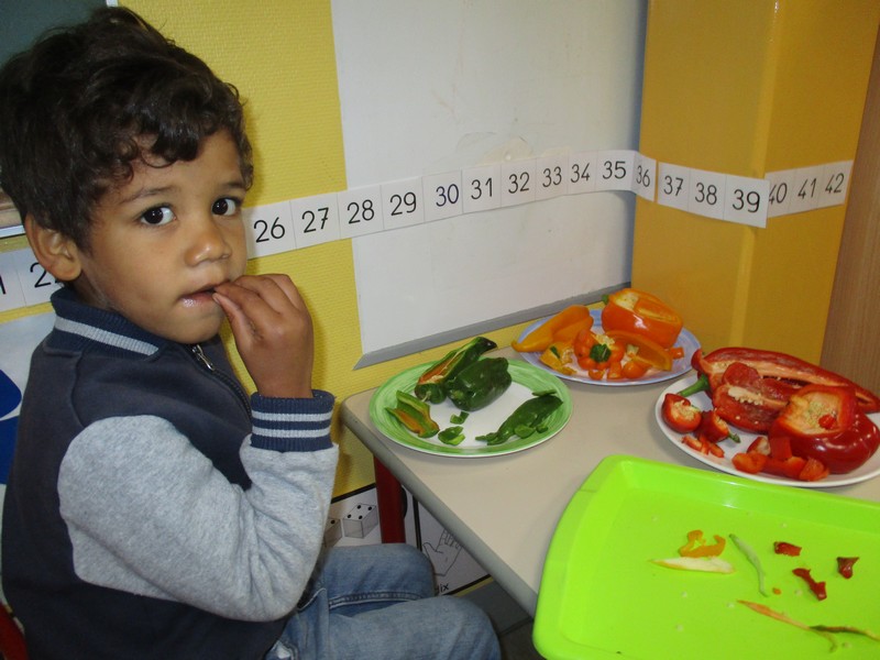 Ils ont d’abord expérimenté les fruits d’automne puis ce fut au tour des légumes. Ils ont pu les voir, les palper, les sentir, les goûter. Tous les sens en éveil !